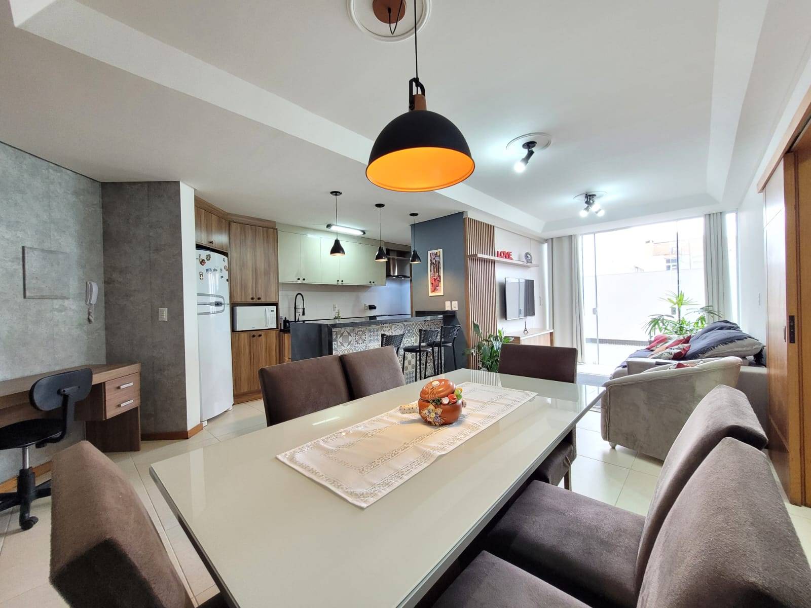 -2 Dormitorios, sendo 1 suíte; -Mobiliado e decorado; -Terraço; Amplo apartamento com 114m², distribuido em 2 Dormitorios, sendo 1 suíte, mobiliado e decorado, living integrado a sacada para 3 ambientes, cozinha equipada sob medida, bancada americana, churrasqueira, área de serviço, banheiro social, vaga de garagem e com amplo terraço. Edifício alto padrão com hall social, 2 elevadores, zeladoria permanente, junto a praça, centro, poucos metros do mar e comercio local. Entre em contato com um de nossos corretores e solicite mais informações.