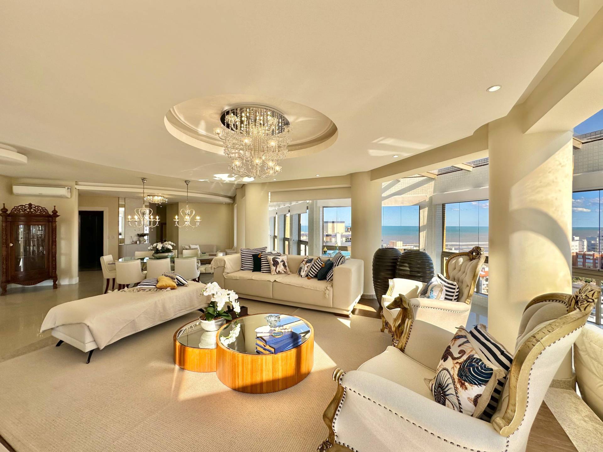 -4 Suítes; -Mobiliado e com vista para o mar; -4 Vagas de garagem; Apartamento 4 dormitórios, sendo 4 suítes, sendo uma com closet, mobiliado e equipado, living integrado com estar e jantar, cozinha equipada, área de serviço, banheiro social, churrasqueira e com excelente posição solar. Edifício junto a avenida, centro e comercio local, com hall social, elevador e zeladoria permanente, poucos minutos do mar. Entre em contato com um de nossos corretores e solicite mais informações.