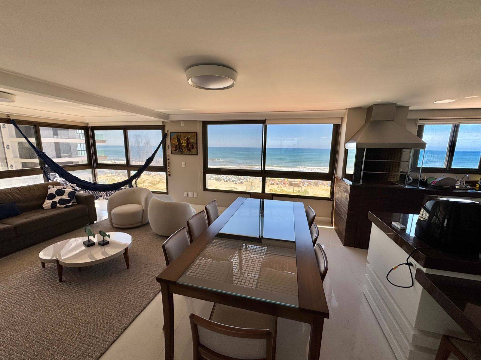 -4 Suítes; -Vista para o mar; -Infraestrutura de lazer e junto a avenida; Apartamento 4 suítes, mobiliado e equipado, living integrado com estar e jantar, cozinha equipada, área de serviço, banheiro social, churrasqueira e com excelente posição solar. Edifício junto a avenida, centro e comercio local, com hall social, elevador e zeladoria permanente, poucos minutos do mar. Entre em contato com um de nossos corretores e solicite mais informações.